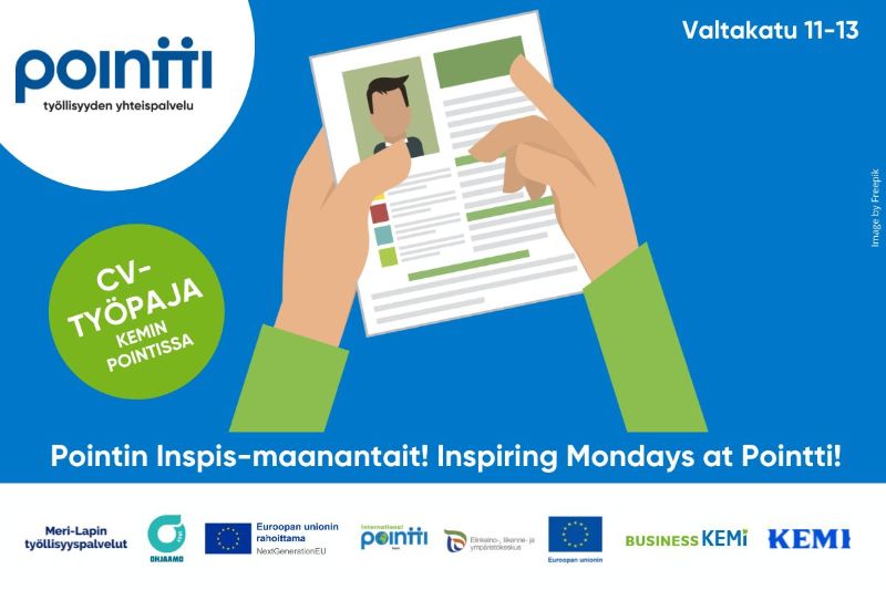 Pointin Inspis-maanantain työpajat toteuttaa: Pointin yrityspalvelutiimi, International Pointti –hanke, Ohjaamo Kemi ja Meri-Lapin työllisyysalue.