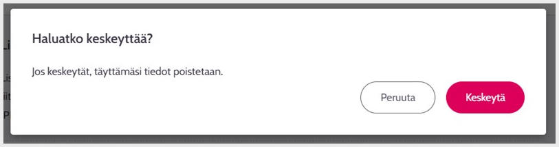 If you want to abort the reprocessing request, click 'Keskeytä / Abort'. Please note that this will delete all the information you have entered and attached.