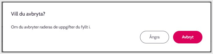 Om du vill avbryta begäran om omprövning väljer du Avbryt. Notera, att avbrytandet tar bort all information som du har skrivit och bifogade bilagor.