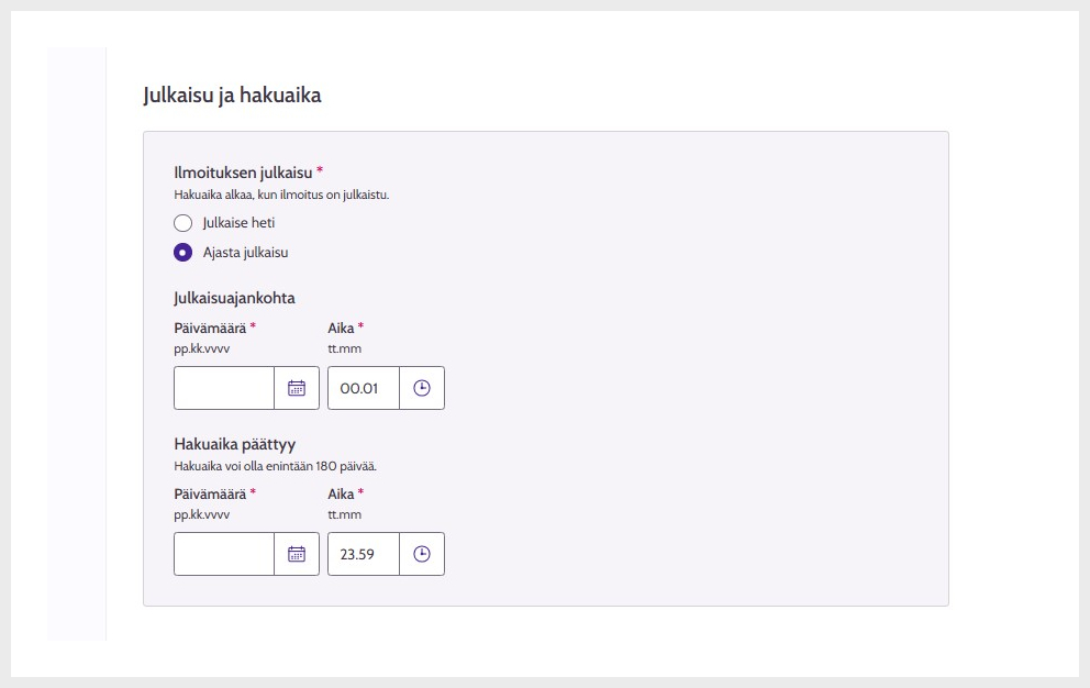 Hakuajan valinnan lisäksi voit halutessasi ajastaa ilmoituksen.