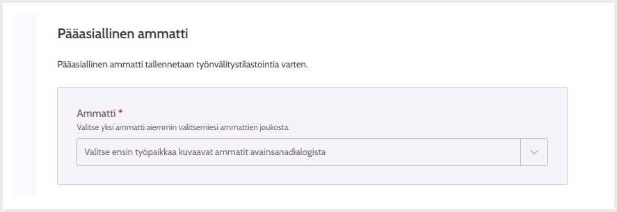 Pääasiallinen ammatti tallennetaan työnvälitystilastointia varten, tieto ei näy työnhakijoille.