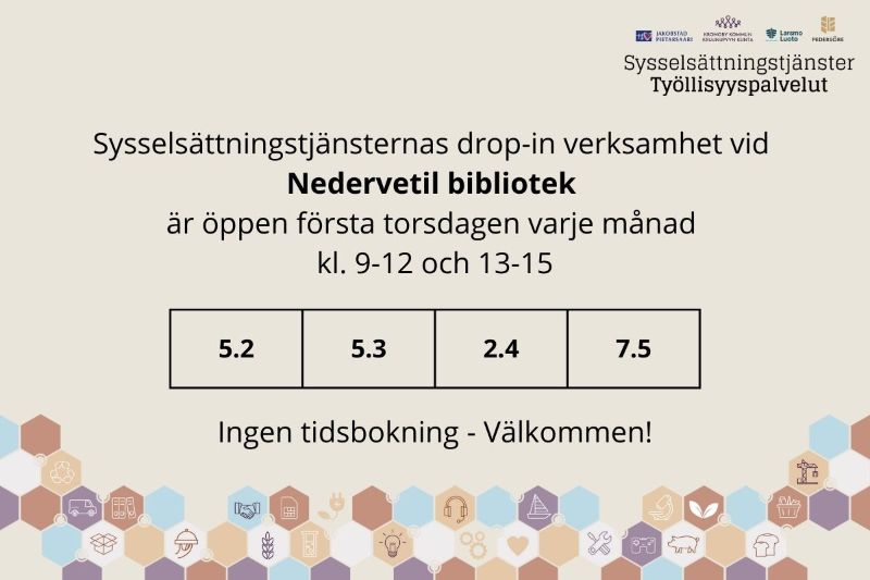 Sysselsättningstjänsterna betjänar i Nedervetil: Drop-In, ingen tidsbokning behövs!