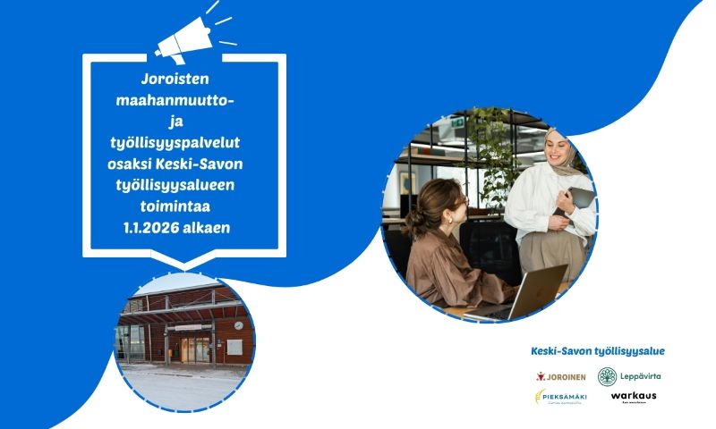 Vuoden 2026 alusta alkaen Joroisten kunnan maahanmuutto- ja työllisyyspalvelut siirtyivät Keski-Savon työllisyysalueen vastuulle. Joroislaisten asiakkaiden palveluissa ei tapahdu muutoksia.
