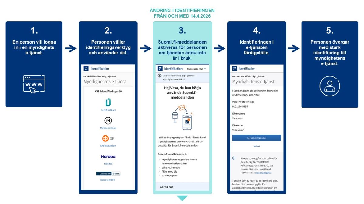 Från och med mitten av april 2026 styrs du direkt till att ta i bruk Suomi.fi-meddelanden i samband med identifieringen, om du ännu inte har tagit tjänsten i bruk. Ibruktagandet kräver åtgärder av dig och sker inte obemärkt.