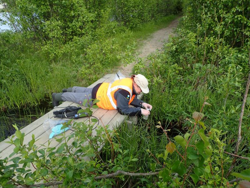 Toimin geologina ja teen maaperän tutkimusta. Vastaan tutkimusprojektista, jossa tehdään maaperän taustapitoisuuskartoituksia kaivosalueiden lähiympäristöissä. Projektiryhmämme on kerännyt alueilta maaperänäytteitä, joista tutkimme erilaisia alkuaineita. Tällä hetkellä työ on siinä vaiheessa, että näytteet on analysoitu ja kirjoitamme tuloksista raportteja, jotka julkaistaan geologisten tietotuotteiden Hakku-palvelussa.