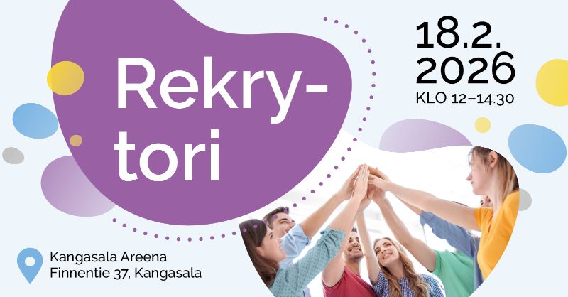 Kangasala Areenalla osoitteessa Finnentie 37 järjestetään keskiviikkona 18.2.2026 kello 12–14.30 työstä ja yrittäjyydestä kiinnostuneille maksuton Rekrytori.