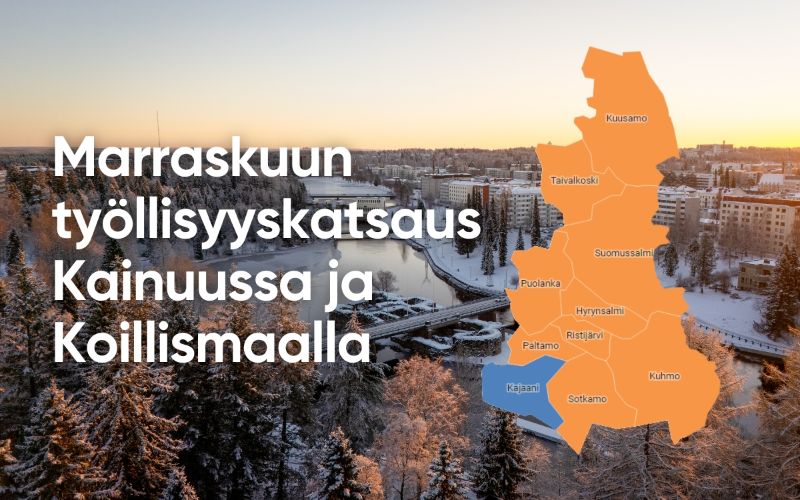 Kainuu-Koillismaan työllisyysalueella oli marraskuun lopussa 4 302 työtöntä työnhakijaa, mikä on 156 henkilöä enemmän (+4 %) kuin vuotta aiemmin. Työttömien määrä laski viime vuoteen verrattuna viidessä työllisyysalueen kymmenestä kunnasta, suhteellisesti eniten Ristijärvellä (-39 %) ja Taivalkoskella (-15 %). Kasvu oli suurinta Kuusamossa (+10 %), Kajaanissa (+9 %) ja Paltamossa (+9 %). Eniten työttömiä työnhakijoita oli Kajaanissa, Kuusamossa ja Kuhmossa. Koko maassa työttömyys nousi 9 %.