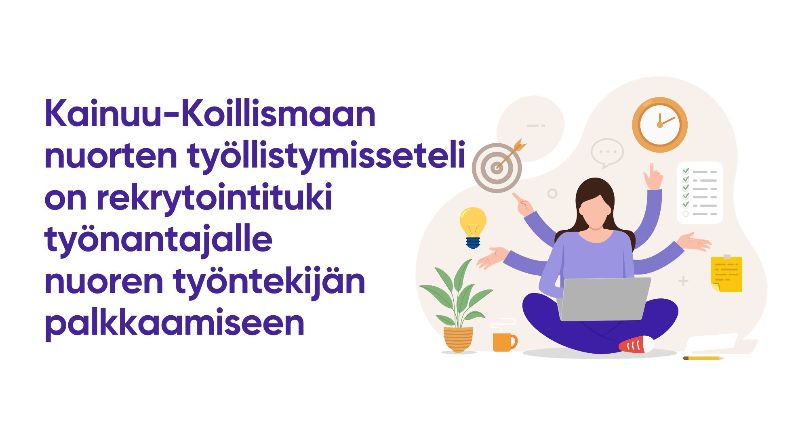 Lisätietoa rekrytointituesta nuoren palkkakustannuksiin ja tuen myöntämisen käytännöistä löytyy Kajaanin kaupungin verkkosivuilta. Tukea haetaan sähköisesti saman verkkosivun kautta ja myönteisen päätöksen jälkeen tuesta tehdään erillinen sopimus työnantajan ja vastuukunta Kajaanin kaupungin kanssa.