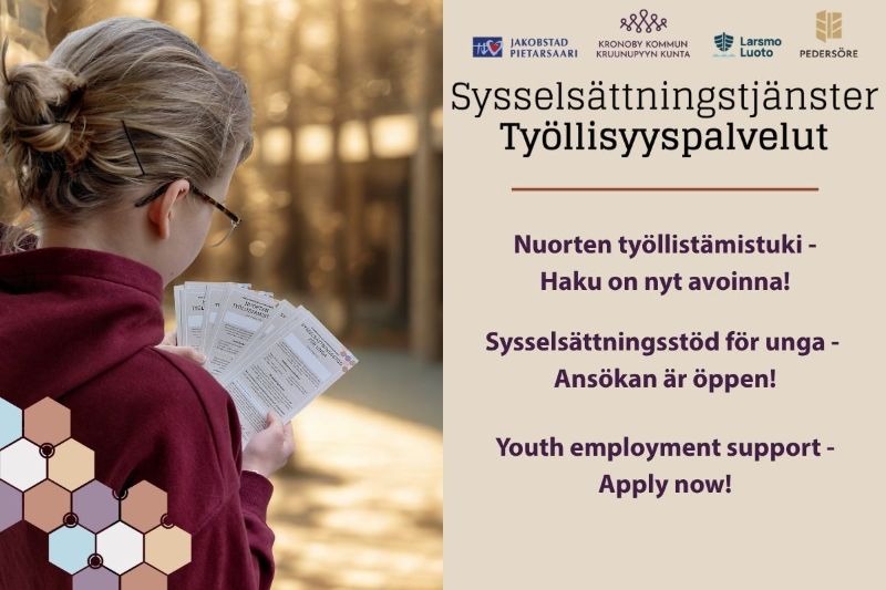 Nuorten työllistämistukion nyt haettavissa Pietarsaaren seudulla.