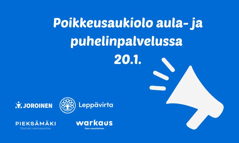Tiistaina 20.1.2026 kaikki toimipisteemme ja puhelinpalvelu palvelevat klo 9-11.