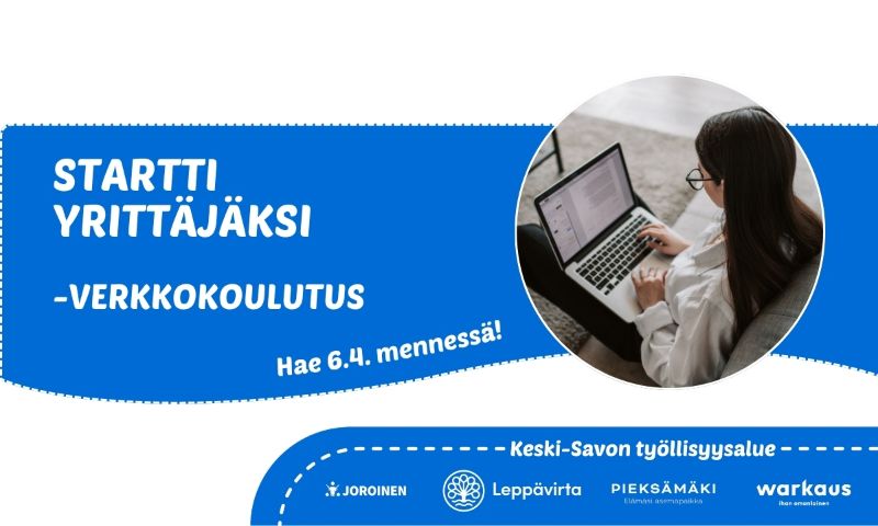 Hei yrittäjä tai yrittäjäksi aikova! Keski-Savon työllisyysalueen järjestämä Startti yrittäjäksi -verkkokoulutus on nyt haussa!